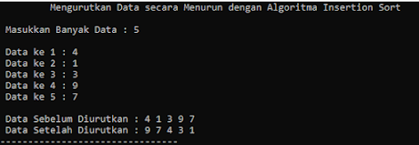 Mengurutkan Data secara Menurun dengan Algoritma Insertion Sort C